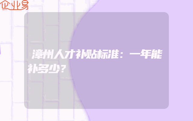 - 漳州人才补贴标准:一年能补多少?