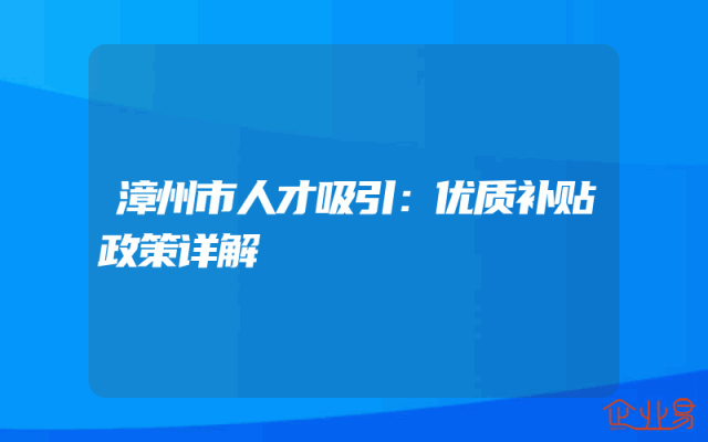 - 漳州市人才吸引:优质补贴政策详解