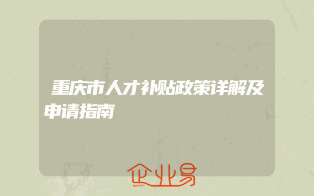 - 重庆市人才补贴政策详解及申请指南