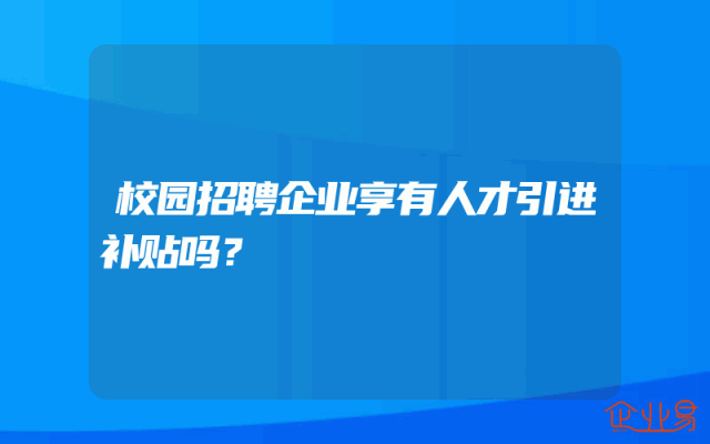 - 校园招聘企业享有人才引进补贴吗?