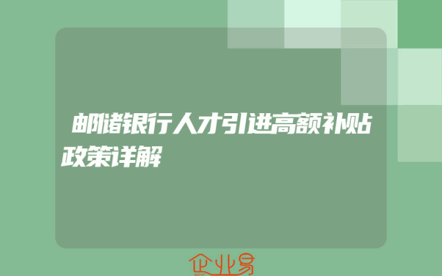 - 邮储银行人才引进高额补贴政策详解