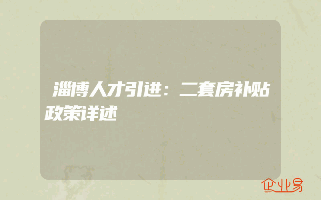 - 淄博人才引进:二套房补贴政策详述