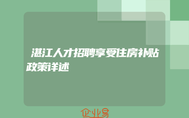 - 湛江人才招聘享受住房补贴政策详述