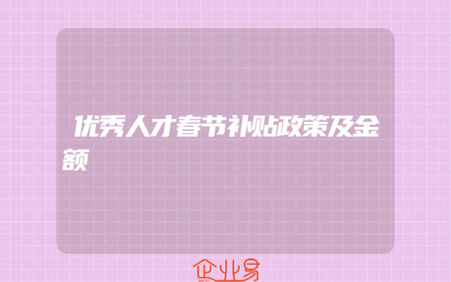 - 优秀人才春节补贴政策及金额解析一、补贴政策的背景与意义随着社会的不断发展,人才竞争日趋激烈。为了鼓励优秀人才继续发挥其价值,春节期间,许多地方和企业会推出人才补贴政策。这一政策不仅是对优秀人才的物质激励,更是对其社会价值的认可和尊重。这些补