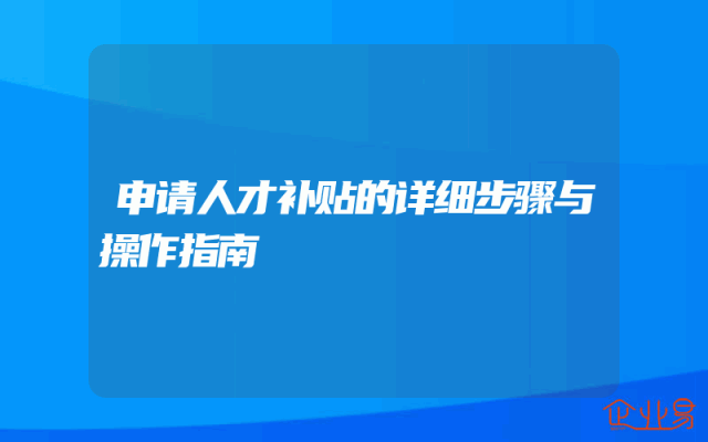 - 申请人才补贴的详细步骤与操作指南