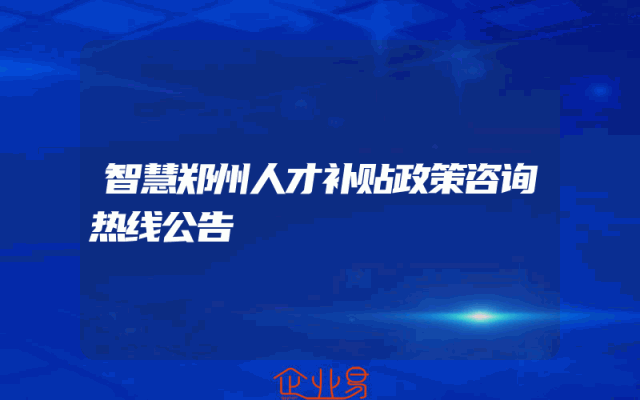 - 智慧郑州人才补贴政策咨询热线公告