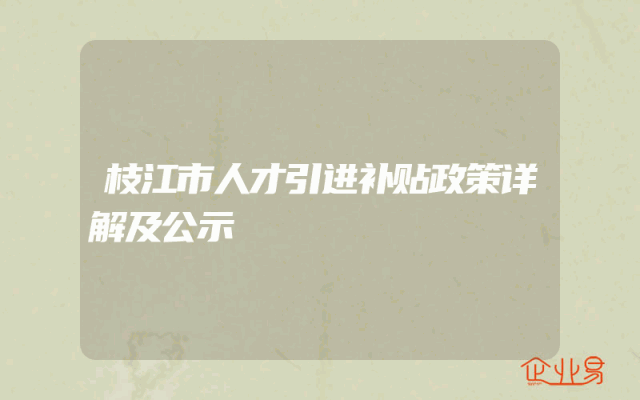 - 枝江市人才引进补贴政策详解及公示一、人才引进补贴政策概述为了促进枝江市经济社会发展,优化人才结构,吸引更多优秀人才来枝江市创新创业,枝江市制定了一系列人才引进补贴政策。这些政策涵盖了多个领域,包括高等教育、科技创新、产业发展等方面,旨在为广
