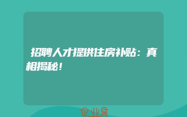 - 招聘人才提供住房补贴:真相揭秘!为何人才住房补贴成为招聘的标配在当今激烈的人才市场竞争环境下,为了吸引和留住优秀人才,不少企业纷纷采取各种策略,其中提供住房补贴便是其中的一项重要举措。这一现象的真相究竟如何?让我们从不同角度揭示。企业吸引人