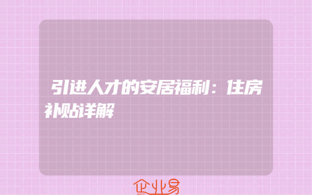 - 引进人才租房补贴政策及金额详解政策背景与目标群体随着城市竞争的加剧,各地政府纷纷出台引进人才的政策,旨在吸引和留住优秀人才,促进地方经济发展。其中,租房补贴政策作为重要的配套措施之一,对于新入职或创业初期的人才而言是一大福音。这项政