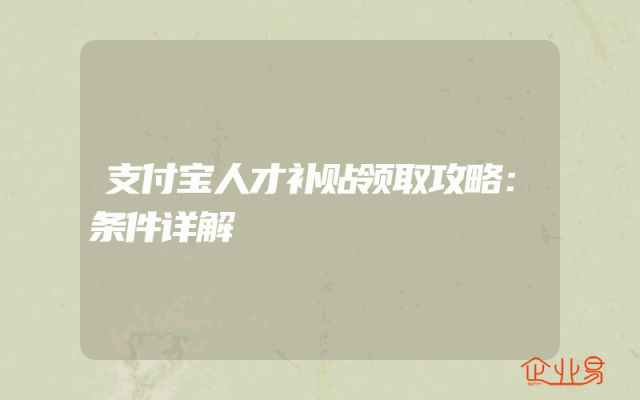 - 支付宝人才补贴领取攻略:条件详解一、支付宝人才补贴概述支付宝作为中国领先的移动支付平台,为了吸引和留住优秀人才,推出了人才补贴计划。这项计划为符合条件的个人和企业提供了一定的经济支持,有助于促进人才的