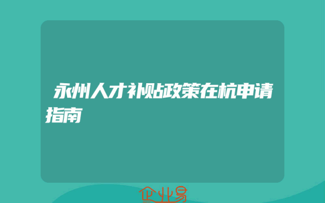 - 永州人才补贴政策在杭申请指南一、永州人才补贴政策概述为了吸引和留住优秀人才,永州市推出了一系列人才补贴政策。这些政策针对不同类型的人才,涵盖了教育、科技、文化、医疗等多个领域。对于在杭州市的人才来说,申请永州的人才补贴政策也是一个不错的选择