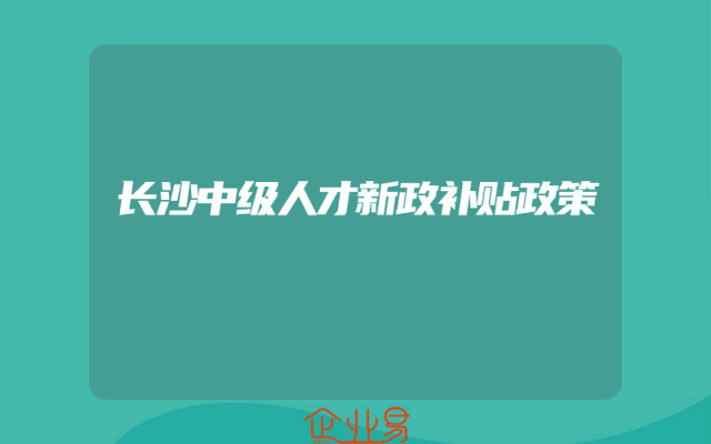 - 长沙中级人才新政补贴政策