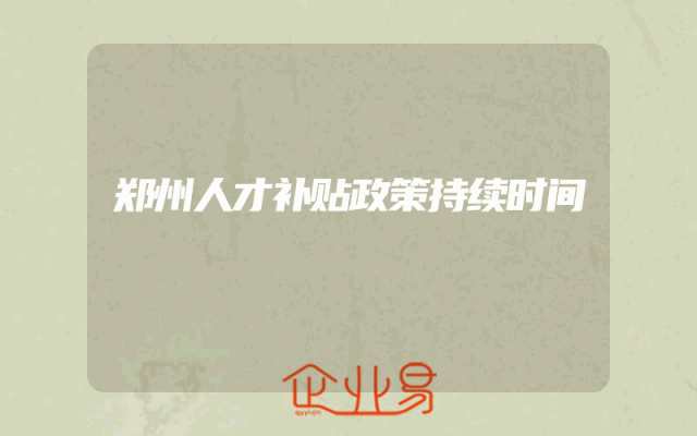 - 郑州人才补贴政策持续时长