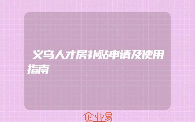 - 义乌人才房补贴申请及使用指南