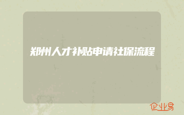 - 郑州人才补贴申请社保流程