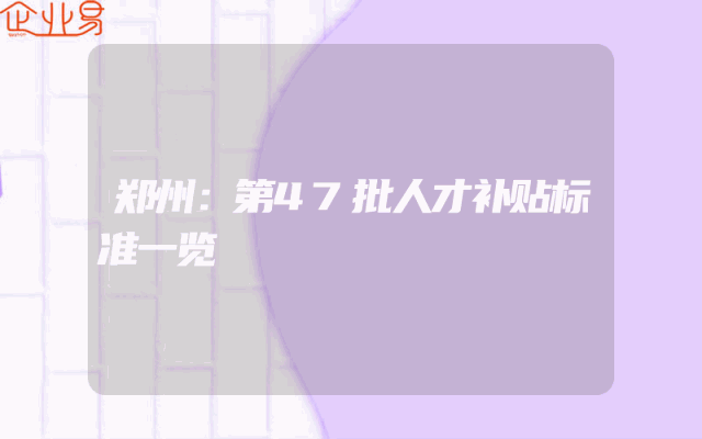 - 郑州:第47批人才补贴标准一览一、前言随着科技的飞速发展和城市竞争的加剧,人才成为了各大城市争夺的焦点。为了吸引和留住更多优秀的人才,郑州市推出了第47批人才补贴政策。这项政策旨在支持各类人才的创新和发展,为他们在郑州的工作和生活提供实质性