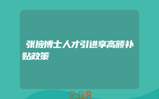 - 张掖博士人才引进享高额补贴政策政策背景与概述近年来,张掖市为了推进科技创新和产业升级,积极响应人才引进战略,特别是对于高层次人才的引进给予了极大的关注。在此背景下,张掖市推出了博士人才引进享高额补贴政策,旨在吸引更多的博士毕业生投身科研与产