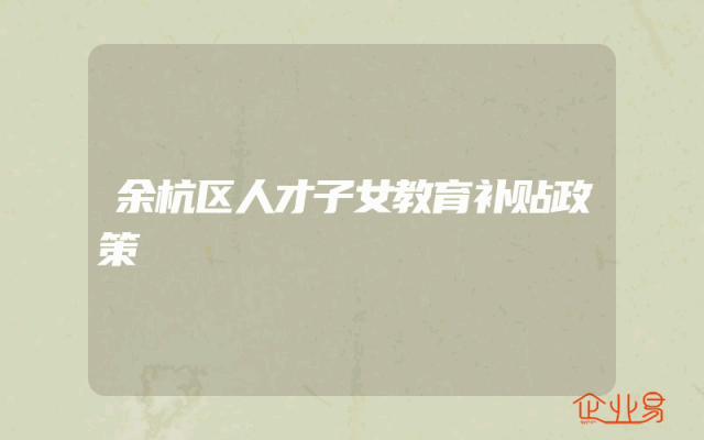 - 余杭区人才子女教育补贴政策详解一、政策背景与目的随着余杭区经济社会的快速发展,对人才的需求也日益增长。为了进一步优化人才发展环境,吸引更多优秀人才落户余杭,促进区域创新活力,余杭区政府推出了人才子女教育补贴政策。该政策的实施旨在解决人才子女