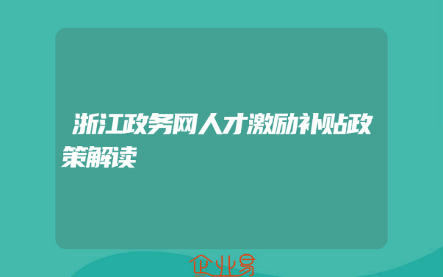 - 浙江政务网人才激励补贴政策解读