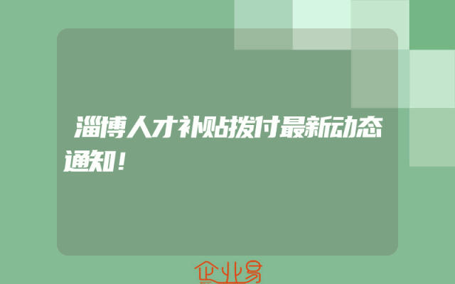 - 淄博人才补贴拨付最新动态通知!