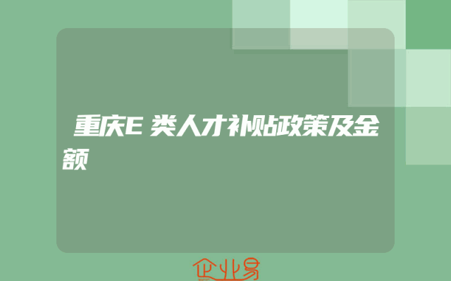 - 重庆E类人才补贴政策及金额
