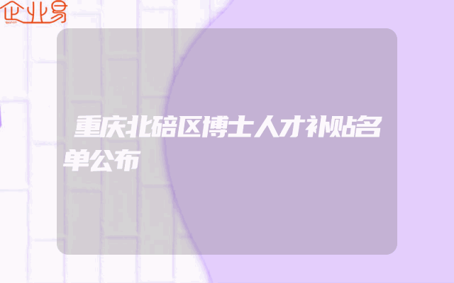- 重庆北碚区博士人才补贴名单公布
