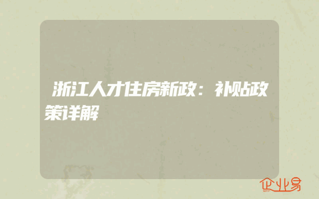 - 浙江人才住房新政:补贴政策详解一、浙江人才住房新政概述近年来,浙江省在吸引和留住人才方面不断推出新政策,其中人才住房政策是重要的一环。浙江人才住房新政旨在解决人才居住问题,为各类人才提供优质的居住环境,进一步促进人才的引进和稳定。二、补贴政