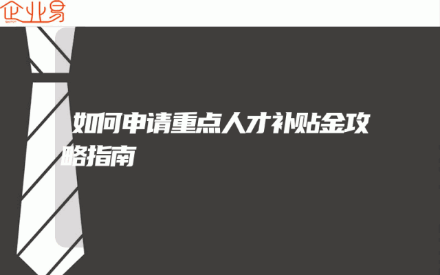 - 如何申请重点人才补贴金攻略指南一、了解重点人才补贴政策在我国,各级政府对重点人才都给予了极大的关注和支持,其中重点人才补贴金是一项重要的优惠政策。想要成功申请这一补贴,首先要对政策有深入的了解。需要明确补贴的对象、申请条件、补贴金额及申请流