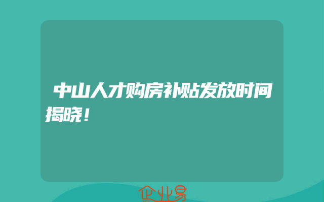 - 中山人才购房补贴发放时间揭晓!