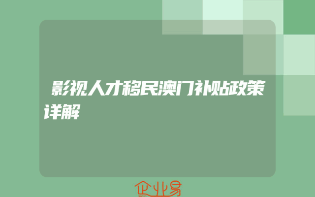 - 影视人才移民澳门补贴政策详解