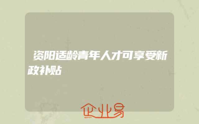 - 资阳适龄青年人才可享受新政补贴