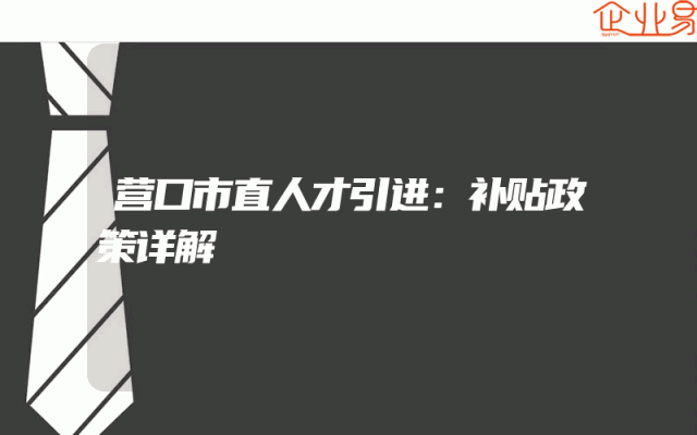 - 营口市直人才引进:补贴政策详解一、补贴政策概述为了吸引和留住更多的优秀人才来推动营口市经济社会发展,优化人才结构,提高城市竞争力,营口市实施了一系列针对市直人才的引进补贴政策。二、补贴政策具体内容(一)生活补贴对于新引进的各类高层次人才,营