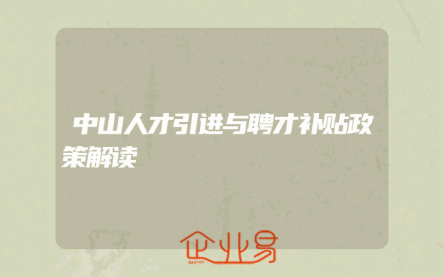 - 中山人才引进与聘才补贴政策解读