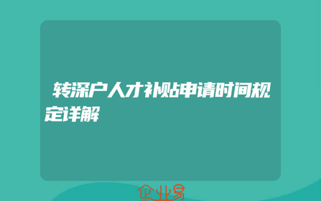 - 转深户人才补贴申请时间规定详解