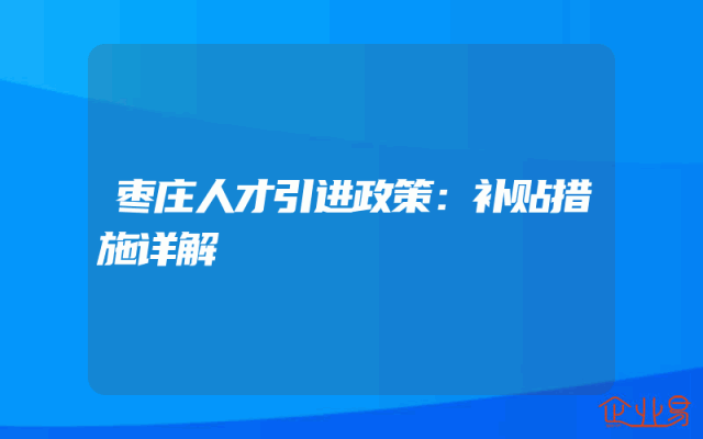 - 枣庄人才引进政策:补贴措施详解