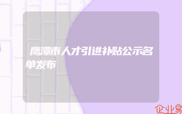 - 鹰潭市人才引进补贴公示名单发布