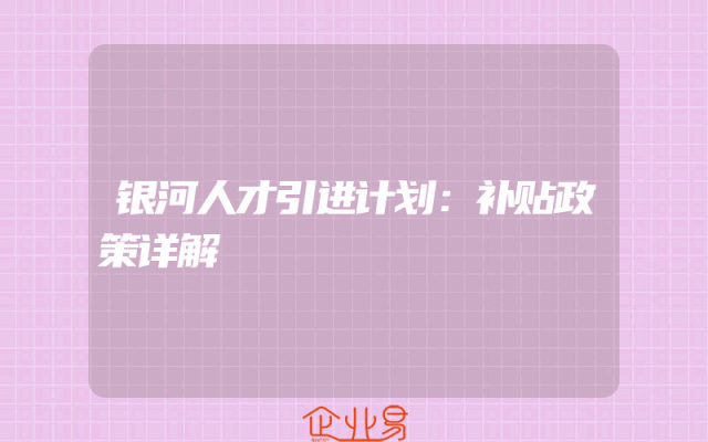 - 银河人才引进计划:补贴政策详解一、引言随着科技的飞速发展和全球化的推进,人才竞争日趋激烈。为了吸引和留住更多的优秀人才,银河人才引进计划应运而生,其中补贴政策作为重要的一环,对于企业和个人都具有极大的吸引力。本文将详细解读银河人才引进计划的