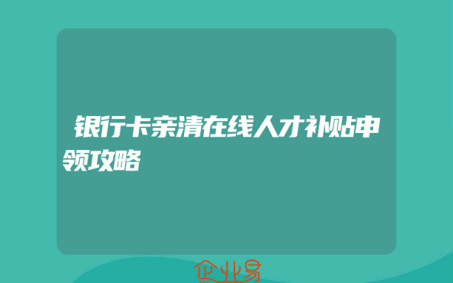 - 银行卡亲清在线人才补贴申领攻略一、了解银行卡亲清在线人才补贴政策首先,我们需要了解银行卡亲清在线人才补贴政策的具体内容和申请条件。这项政策是为了鼓励和支持各类人才的发展,特别是针对那些在特定领域有突出贡献或专业技能的人才。通过银行卡亲清平台