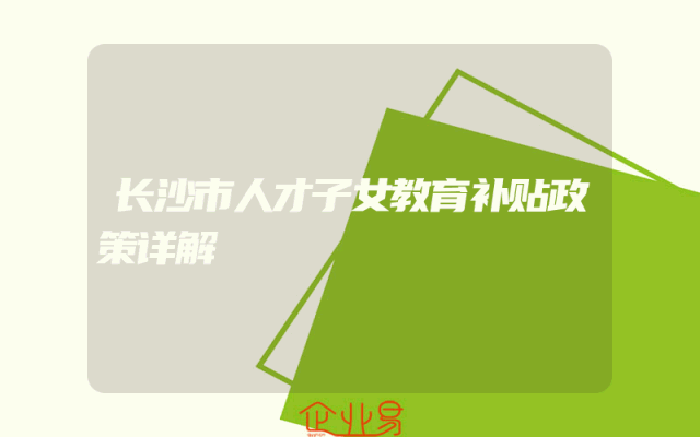 - 长沙市人才子女教育补贴政策详解