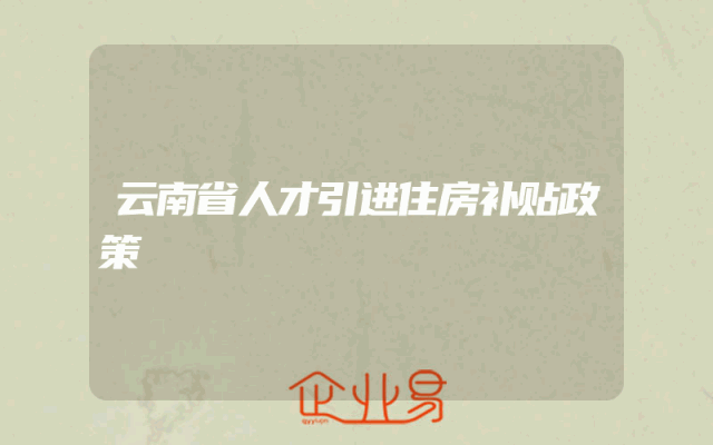 - 云南省人才引进住房补贴政策