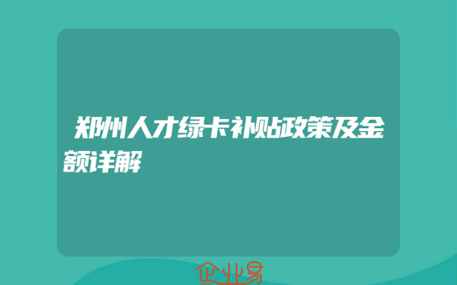 - 郑州人才绿卡补贴政策及金额详解一、郑州人才绿卡补贴政策概述郑州作为河南省的省会城市,一直致力于吸引和留住各类优秀人才。为了优化人才生态环境,郑州推出了一系列的人才政策,其中人才绿卡补贴政策便是其中的一项重要举措。该政策旨在通过提供一系列优惠