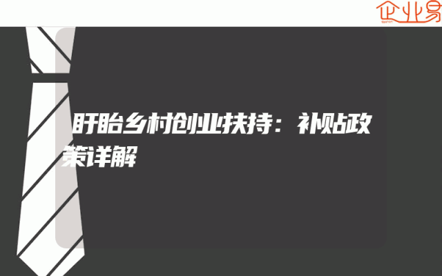 - 盱眙乡村创业扶持:补贴政策详解一、引言随着国家对于乡村振兴战略的深入推进,盱眙县政府积极落实相关政策,为鼓励乡村创业、促进农村经济发展,出台了一系列的补贴政策。本文将详细解读这些政策,帮助有意在盱眙乡村创业的朋友们更好地了解和利用这些扶持政