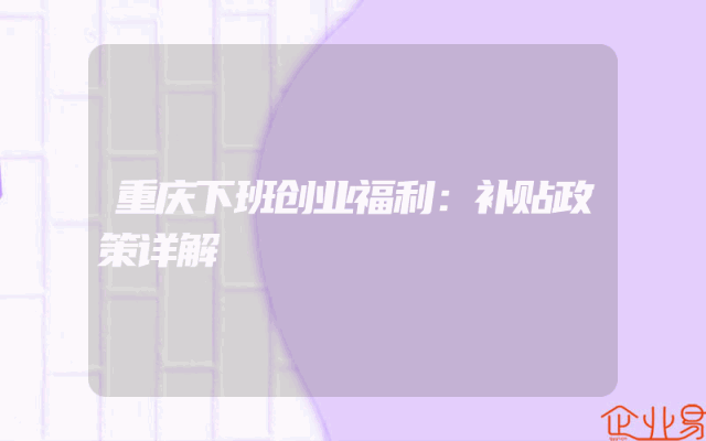 - 重庆下班创业福利:补贴政策详解一、重庆市创业补贴政策概述重庆市为了鼓励市民下班后进行创业,实施了一系列的补贴政策。这些政策从多个角度为创业者提供了支持和帮助,促进了创新创业的氛围。二、创业启动资金补贴对于在重庆创业的市民,政府提供了创业启动