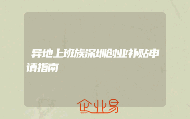 - 异地上班族深圳创业补贴申请指南在深圳这座充满活力的城市,许多异地上班族怀揣创业梦想,为了支持这些有志之士,深圳市政府推出了一系列的创业补贴政策。本文将为大家详细解读如何申请这些补贴,帮助异地上班族更好地在深圳实现创业理想。一、了解政策在深圳