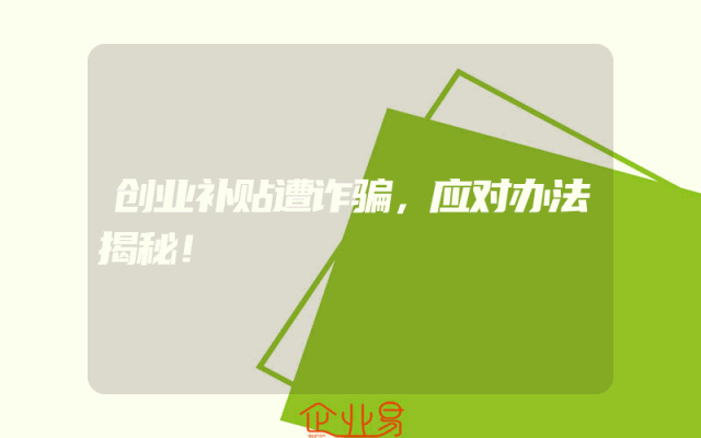 - 创业补贴遭诈骗,应对办法揭秘!