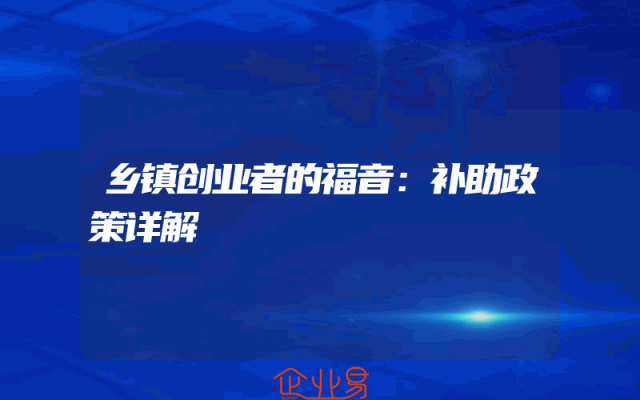 - 乡镇创业者的福音:补助政策详解