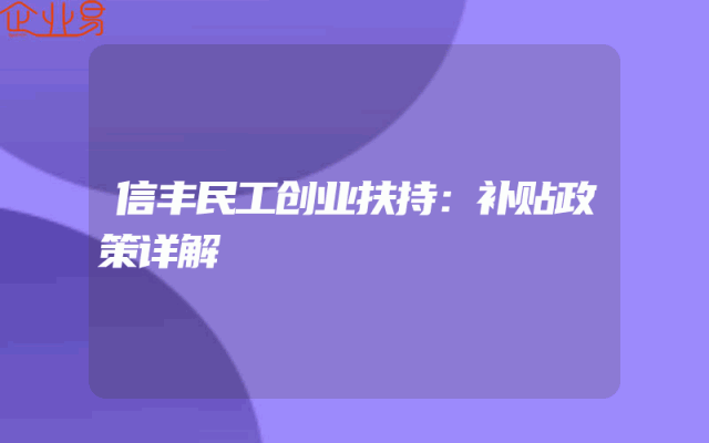 - 信丰民工创业扶持:补贴政策详解政策背景与支持对象在当前鼓励创业、支持创新的背景下,信丰县针对民工创业推出了一系列扶持补贴政策。这些政策旨在鼓励在外务工人员返乡创业,带动地方经济发展,提高就业率。政策的支持对象主要是信丰县户籍的民工创业者,特