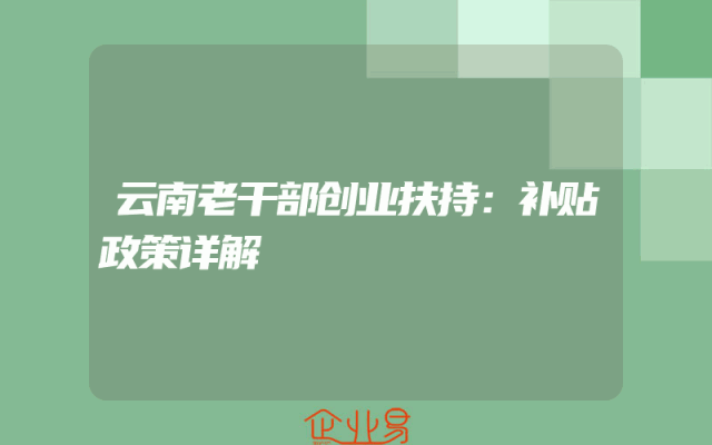 - 云南老干部创业扶持:补贴政策详解一、云南老干部创业扶持背景云南省为了鼓励和支持老干部积极参与创业,推动地方经济发展,出台了一系列的创业扶持政策。这些政策为老干部提供了资金支持、项目扶持以及技术帮助等,有效地降低了创业门槛和风险,提高了创业成