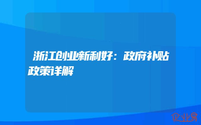 - 浙江创业新利好:政府补贴政策详解一、浙江省政府创业补贴政策概述在浙江省,政府积极推行一系列创业补贴政策,以鼓励本地及外来创业者在这片热土上大展拳脚。这些政策不仅为创业者提供了资金支持,更为他们创造了良好的创业环境。接下来,我们将详细解读这些