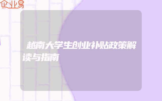 - 越南大学生创业补贴政策解读与指南一、越南大学生创业补贴政策概述近年来,越南政府为鼓励大学生创业、推动经济发展,实施了一系列创业补贴政策。这些政策主要针对在越南注册创业的大学生,为其提供资金支持和相关优惠政策,降低创业门槛和风险。二、创业补贴